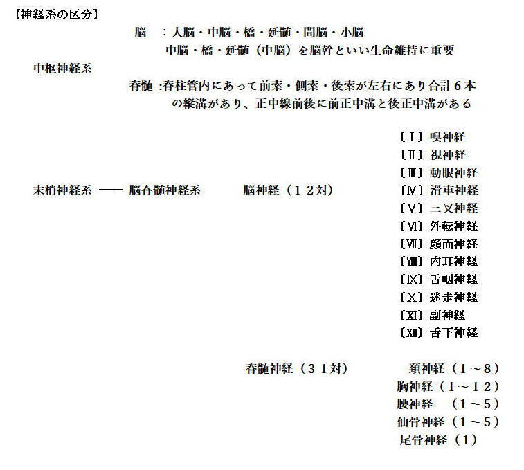 末梢神経の分類では中枢神経系(脳と脊髄)から出ている繊維束の総称をいう。